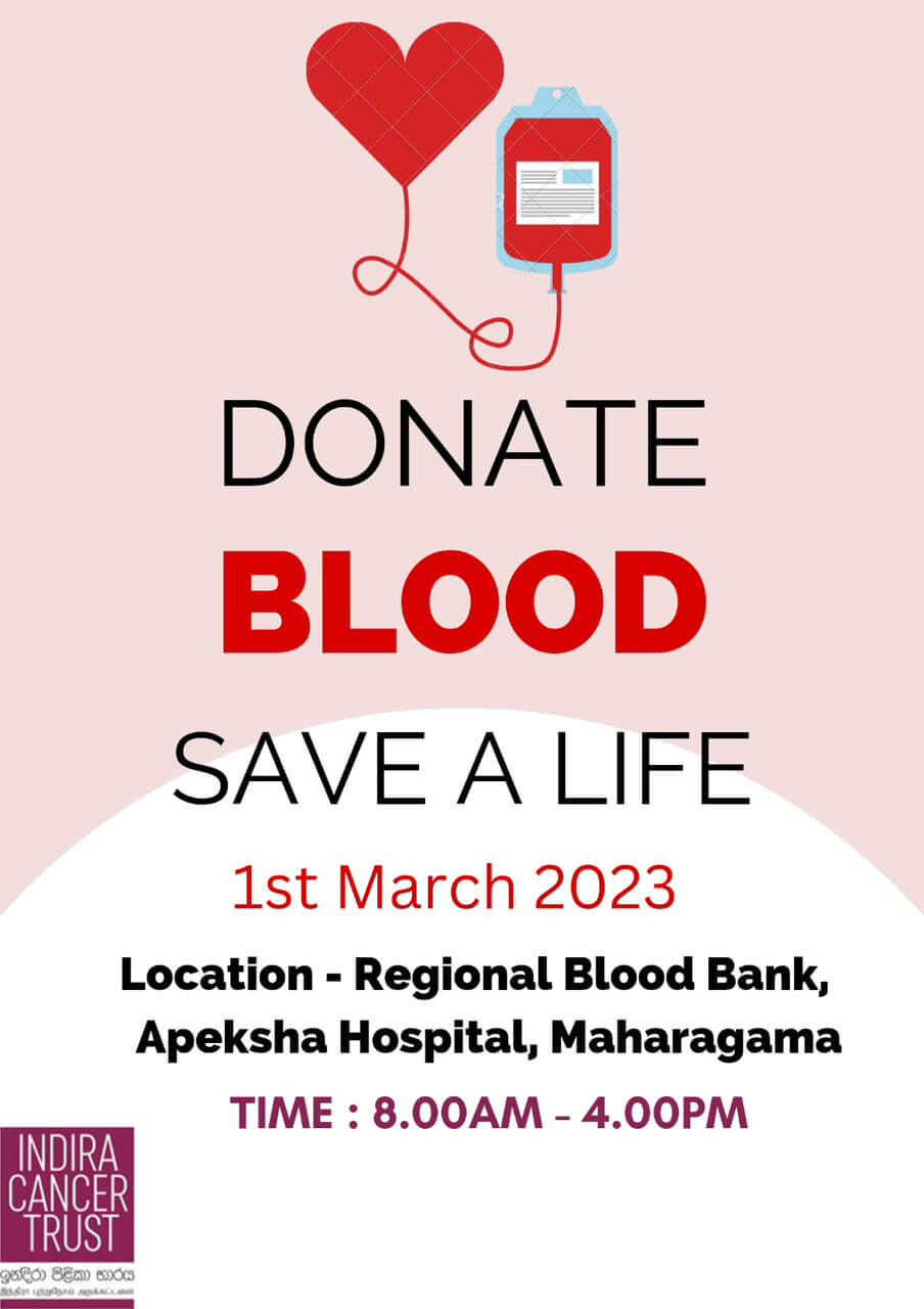 Our healthy blood is free. Let’s share it with those who aren’t so lucky. Come donate blood at the Apeksha Hospital on 01 March 2023 between 8.00am and 4.00pm. Take this opportunity to give the gift of life.