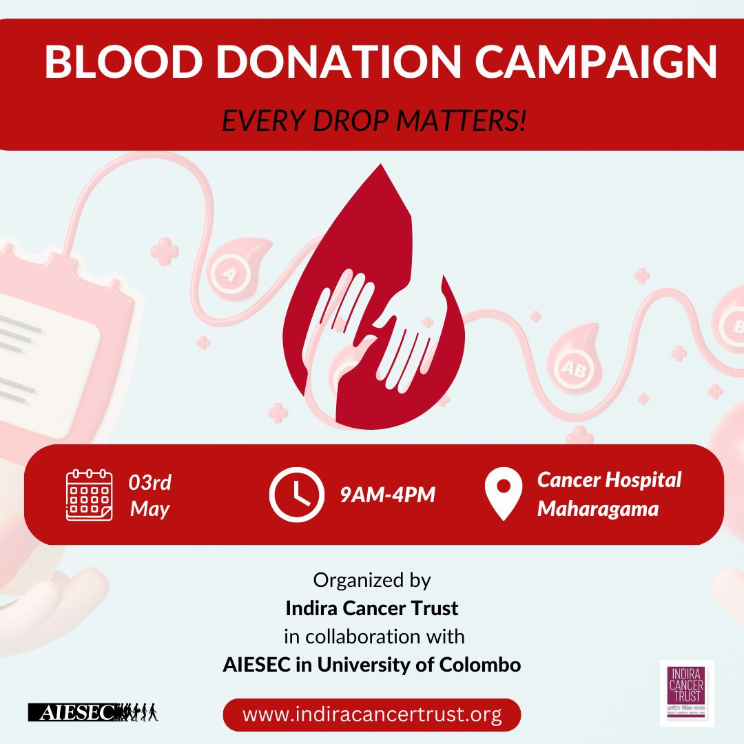 A blood donation campaign organized by Indira Cancer Trust in collaboration with AIESEC in University of Colombo is to be held on